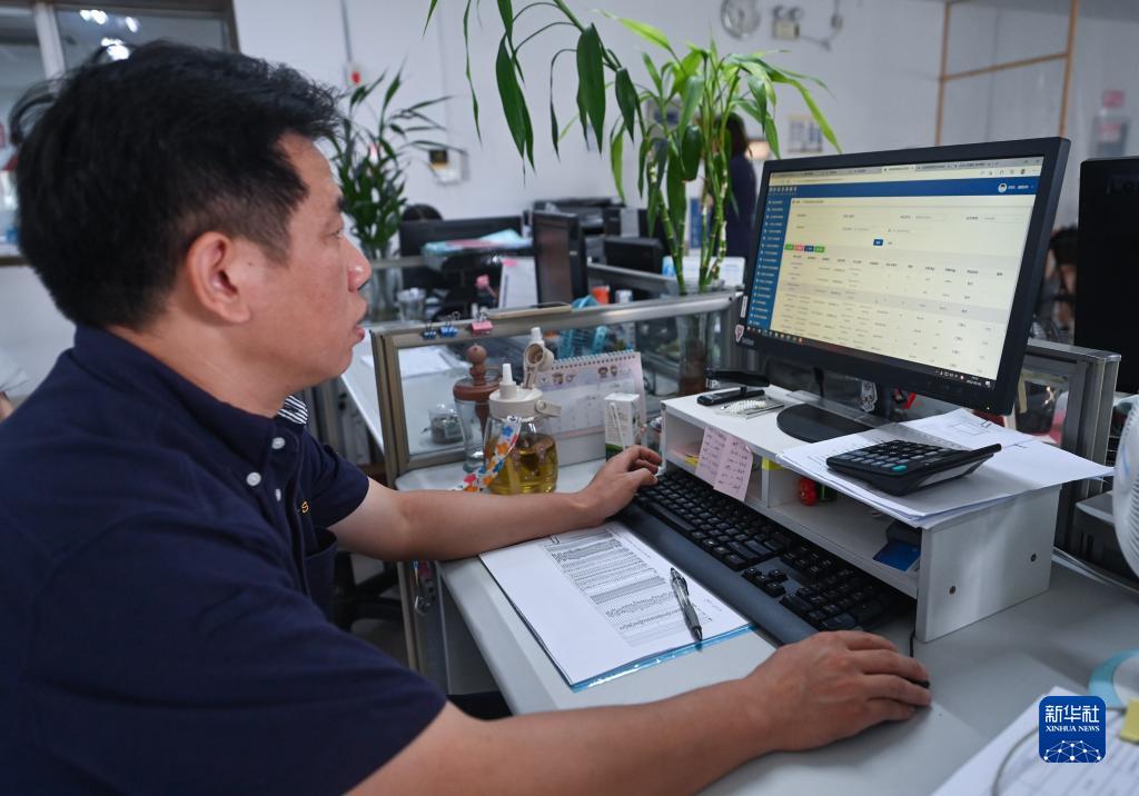9月2日,杭州綜合保稅區(qū)一家外貿(mào)企業(yè)的工作人員在“數(shù)字綜保”綜合服務(wù)平臺(tái)上進(jìn)行保稅和非保稅貨物結(jié)轉(zhuǎn)。該企業(yè)通過(guò)在數(shù)字化平臺(tái)上進(jìn)行報(bào)關(guān)通關(guān),完成“保稅”結(jié)轉(zhuǎn)為“非保稅”,每批次貨物時(shí)間由原來(lái)的1天壓縮至1小時(shí)。