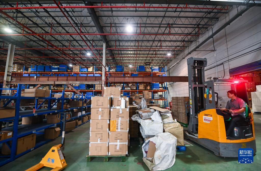 9月2日,在杭州綜合保稅區一家跨境保稅倉內,工作人員在搬運跨境電商保稅進口商品。“數字綜保”綜合服務平臺提升了跨境保稅倉貨物的流轉效率,為企業節省時間和費用。