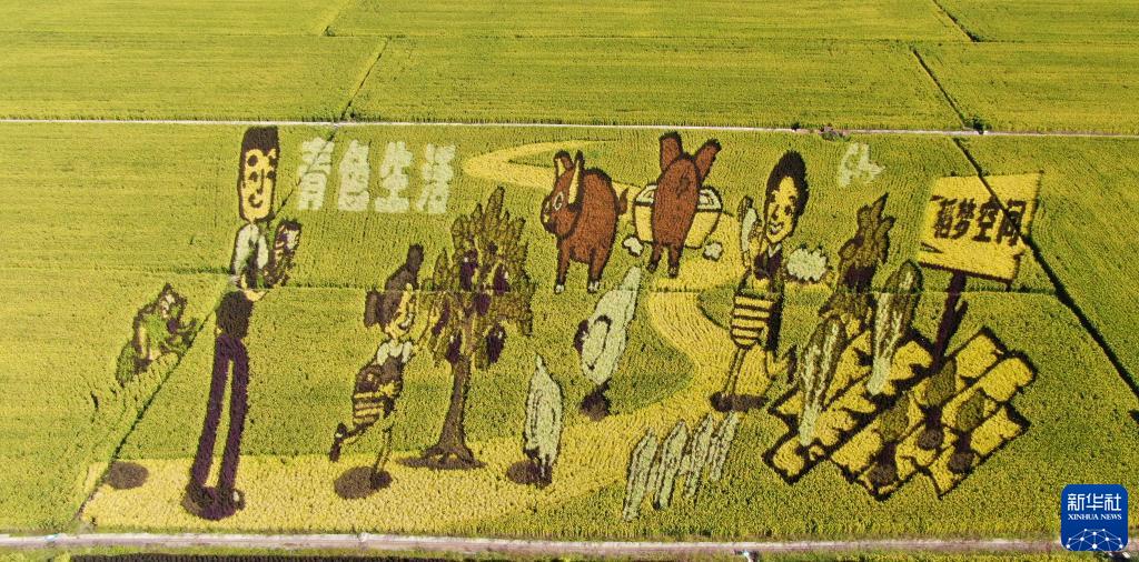 這是9月1日在“稻夢空間”景區拍攝的稻田畫(無人機照片)。