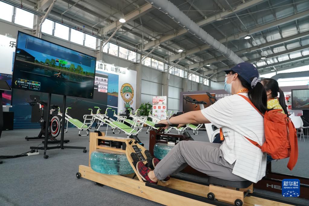 9月2日,在服貿會體育服務專題展區,觀眾體驗劃船機。新華社記者 任超 攝