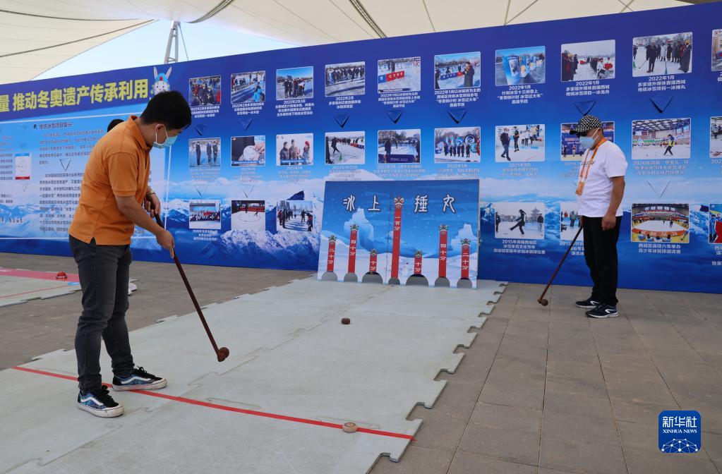 9月1日,一名男子在服貿(mào)會體育服務(wù)專題展區(qū)體驗(yàn)冰上捶丸。新華社記者 戚曉毅 攝