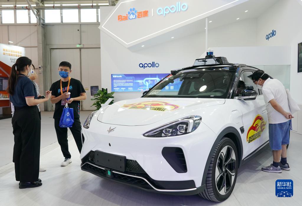 9月2日,參觀者在供應鏈及商務服務專題展區參觀一款自動駕駛汽車。