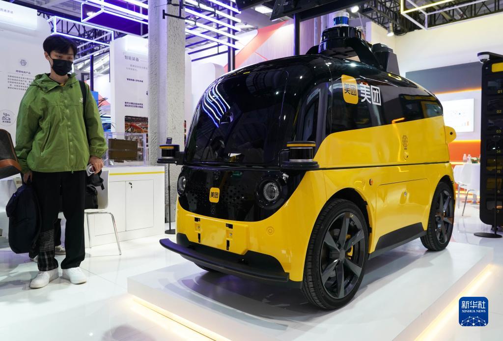 9月2日在供應鏈及商務服務專題展區拍攝的自動配送車。