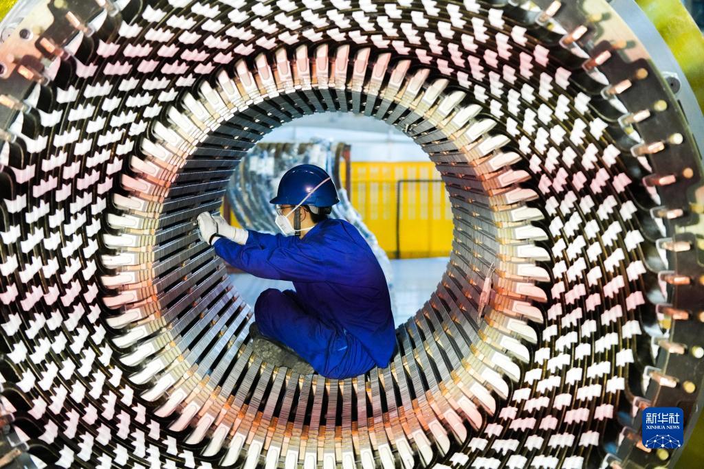 9月3日,在哈電集團哈爾濱電機廠有限責任公司的生產車間,工人在進行生產作業。