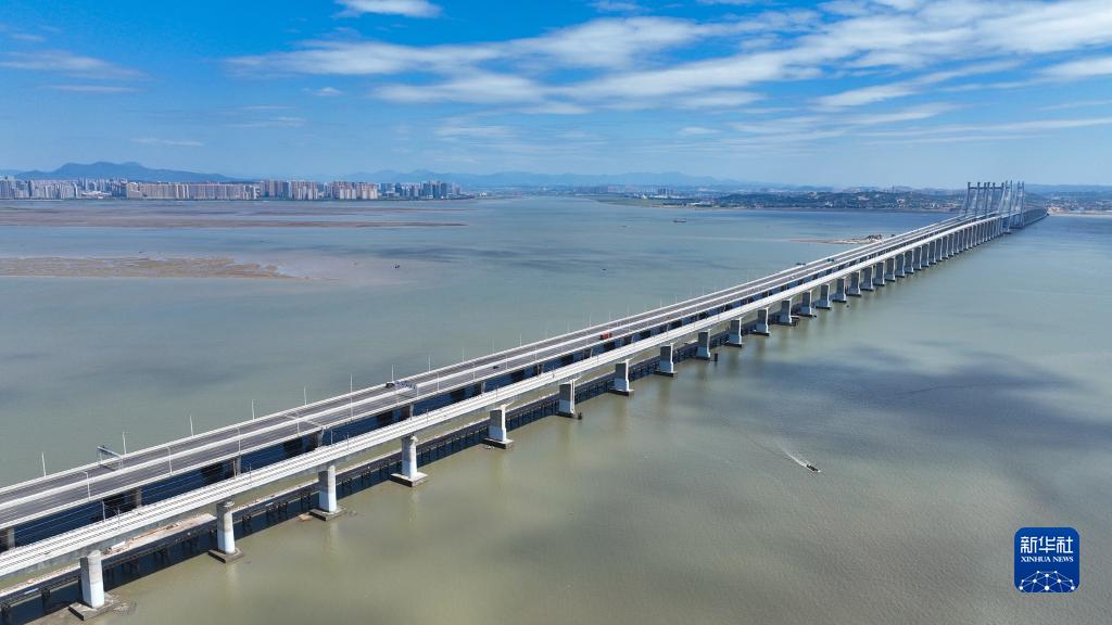 這是9月2日拍攝的新建福廈鐵路泉州灣跨海大橋(無人機照片)。