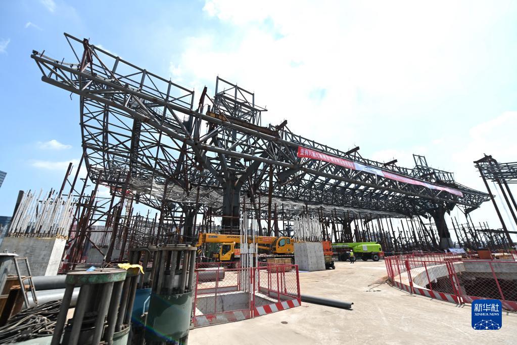 新建福廈鐵路廈門北站施工現場(8月30日攝,無人機照片)。