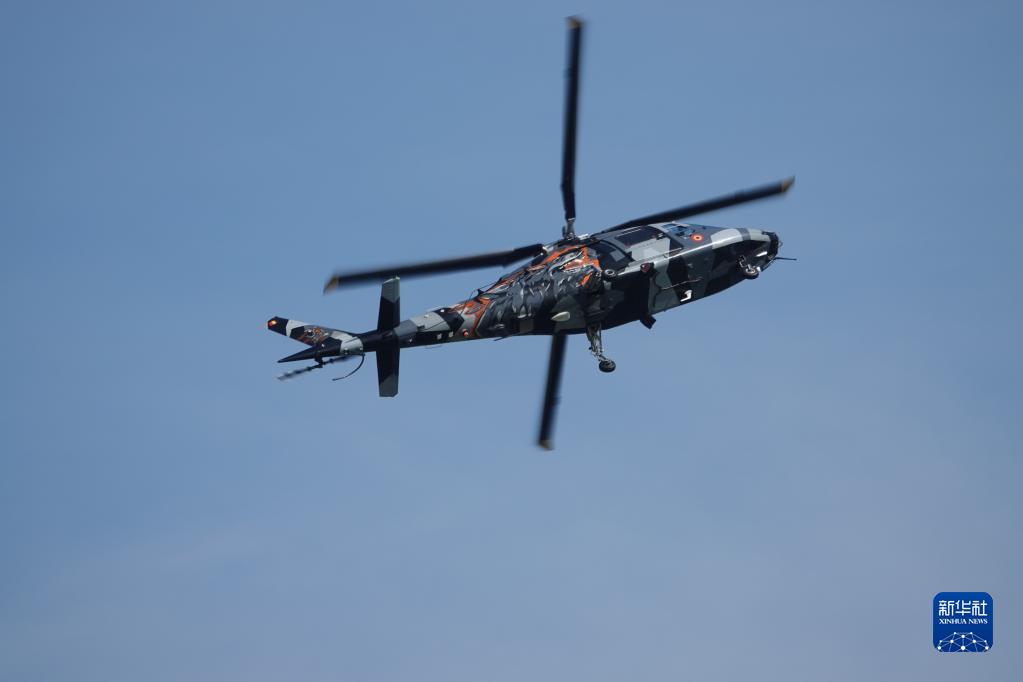 9月3日,一架直升機(jī)在奧地利“空中力量-2022”航展上表演。