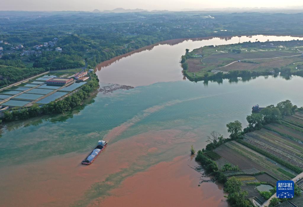 廣西南寧市江南區(qū)江西鎮(zhèn)三江口水域,左江與右江水在交匯處清濁交融(9月3日攝,無人機(jī)照片)。