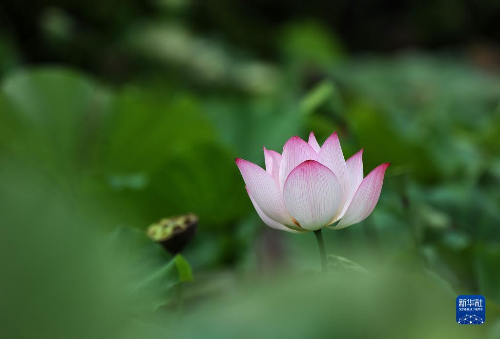 8月23日在貴州省黔東南苗族侗族自治州丹寨縣龍泉鎮展良村拍攝的荷塘中的荷花。