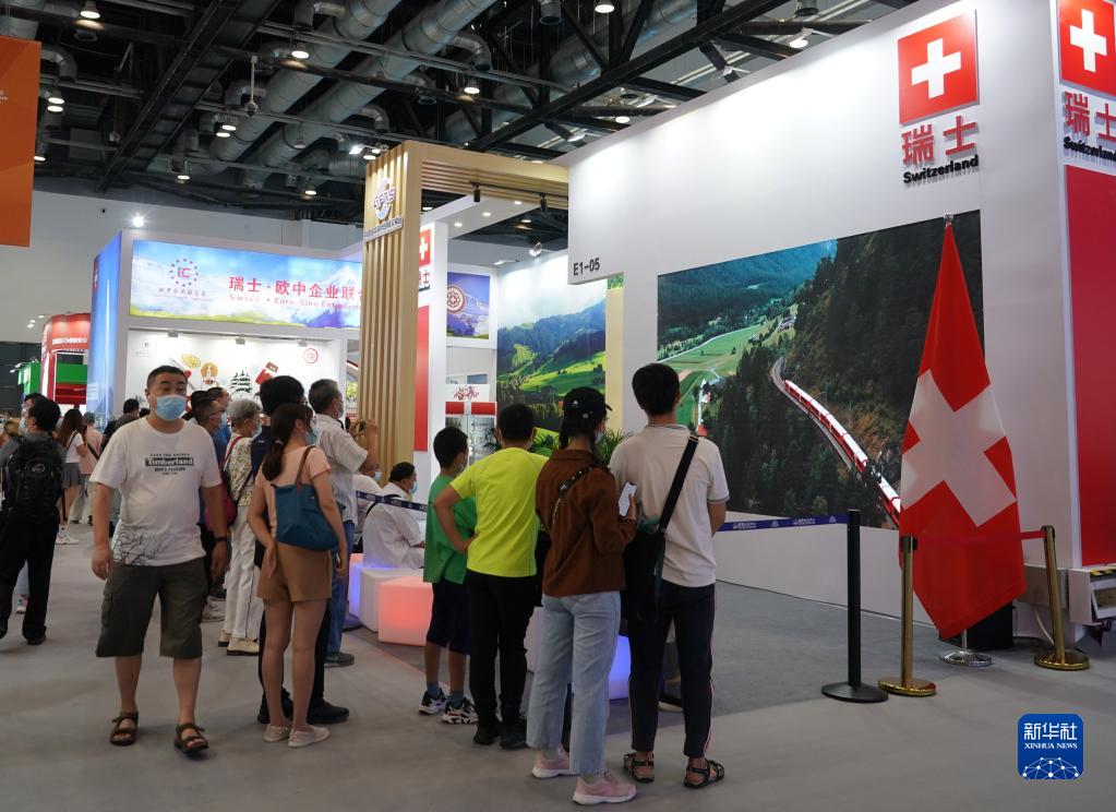 9月4日,人們?cè)诜Q(mào)會(huì)國(guó)家會(huì)議中心展館國(guó)別展區(qū)的瑞士展臺(tái)參觀。