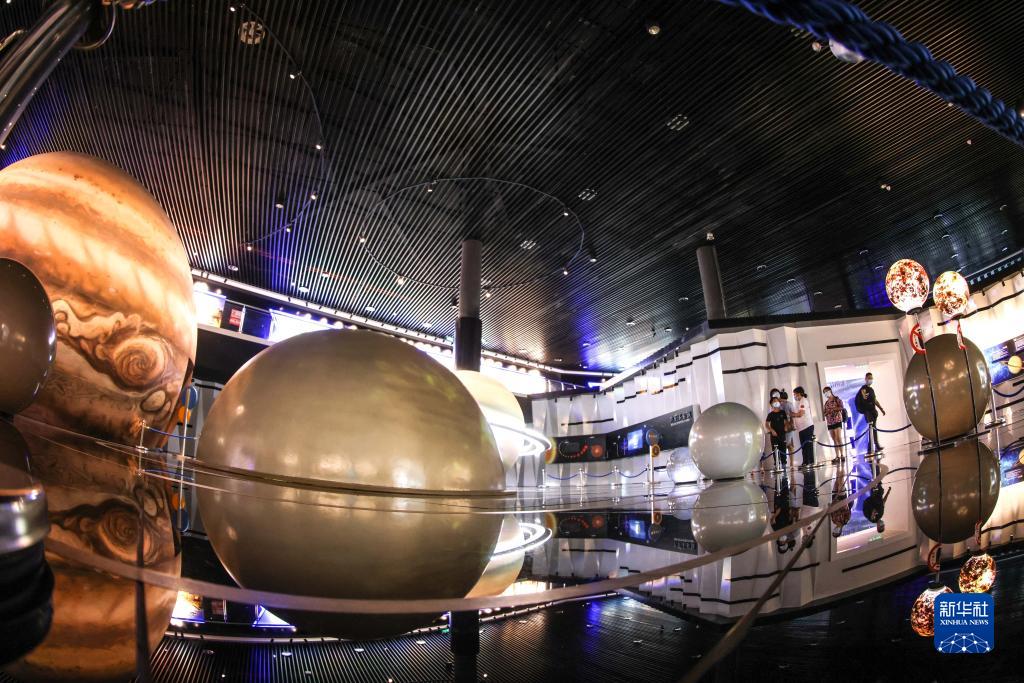 2022年7月20日,參觀者在天文體驗館內參觀。