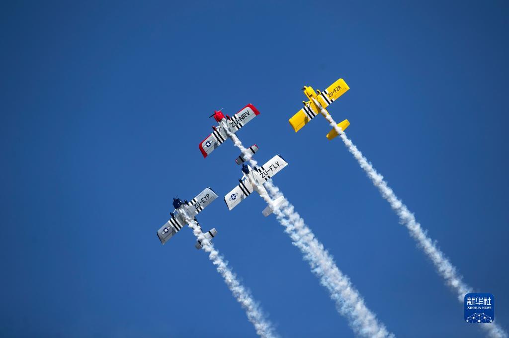 這是9月4日在南非約翰內斯堡拍攝的蘭德航展上的飛行表演。