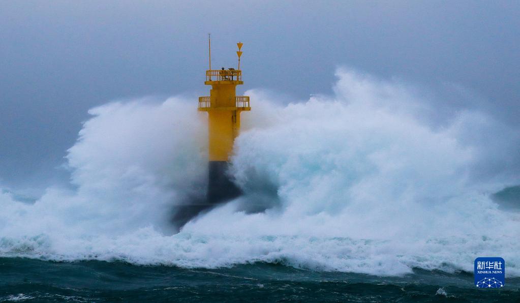 這是9月5日在韓國(guó)濟(jì)州島西歸浦市附近海域拍攝的海浪。