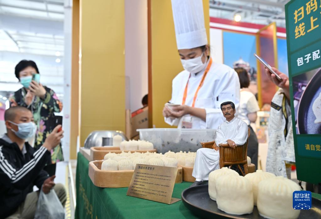 9月5日,在服貿(mào)會文旅服務(wù)專題展公園禮物展臺,北京中山公園來今雨軒的廚師現(xiàn)場制作冬菜包子。