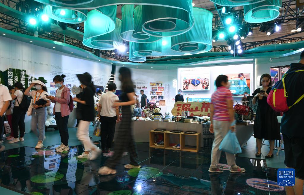 9月4日,觀眾在服貿會首鋼園區的文旅服務專題展區游覽購物。