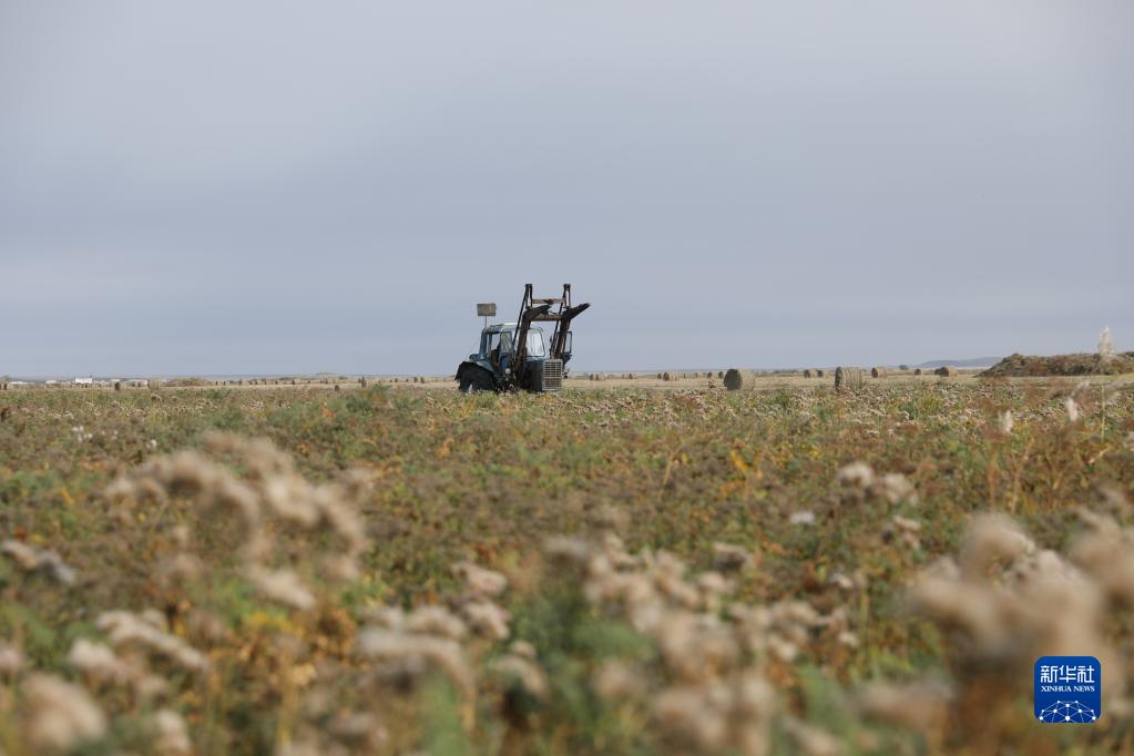 哈薩克斯坦北部地區9月進入牧草集中收割的季節,成片的牧草被牧民收割、曬干并捆成草垛,以備牲畜在冬季食用。新華社發(奧斯帕諾夫攝)