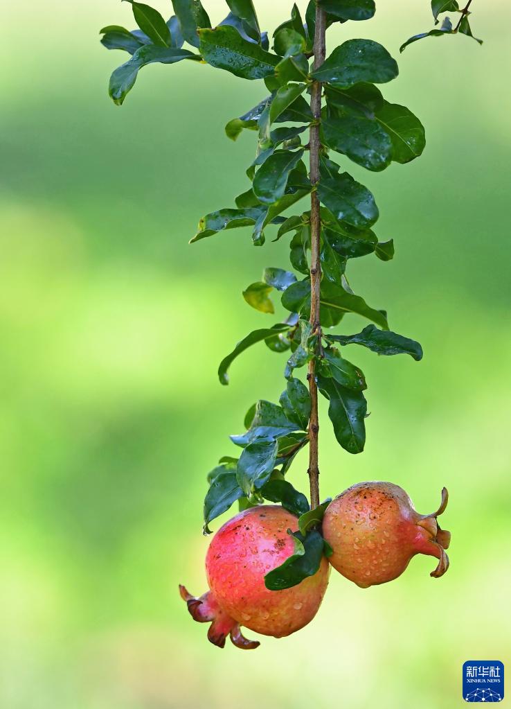 9月4日,在山東省滕州市西崗鎮(zhèn),農(nóng)戶種植的石榴即將成熟。