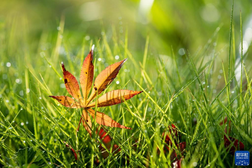 9月4日,在貴州省黔東南苗族侗族自治州錦屏縣敦寨鎮(zhèn),楓葉掉落在草叢里。