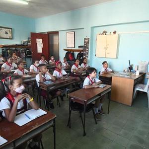 9月5日,學生們在古巴哈瓦那一所小學的教室里上課。