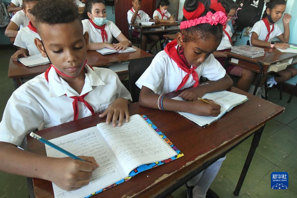 9月5日,學生們在古巴哈瓦那一所小學的教室里上課。