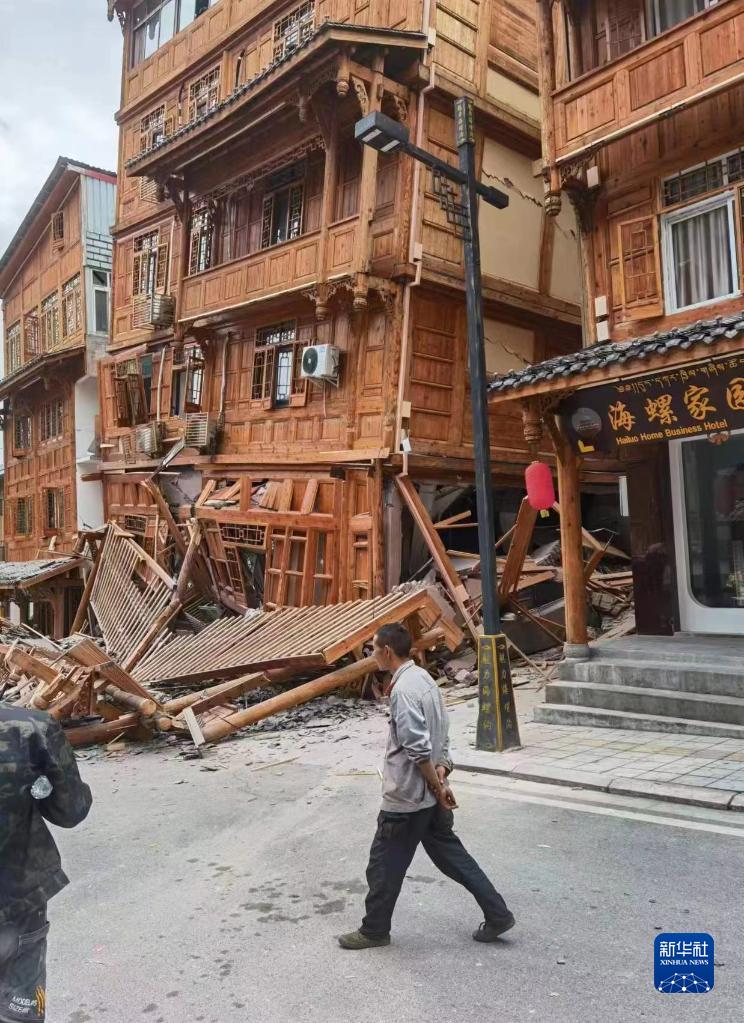 這是9月5日拍攝的四川甘孜州瀘定縣磨西鎮(zhèn)震后房屋受損情況。