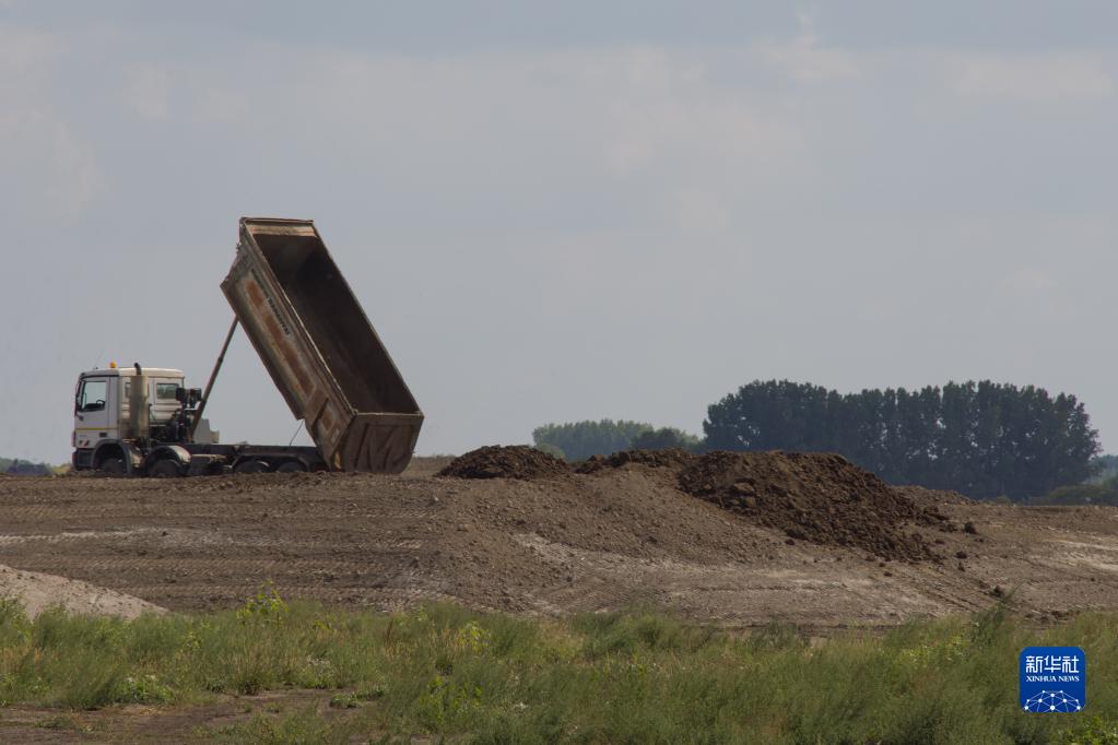 9月5日,在匈牙利德布勒森,工人駕駛卡車在寧德時代匈牙利工廠工地上施工。