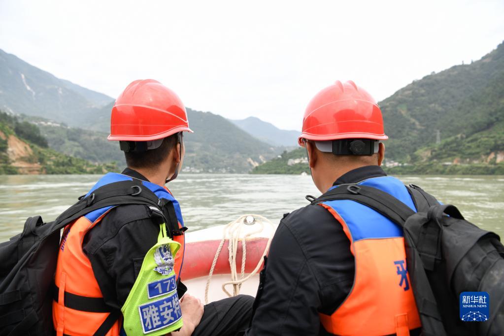 9月6日,救援人員搭乘快艇由石棉縣新民鄉前往王崗坪鄉參與救援。