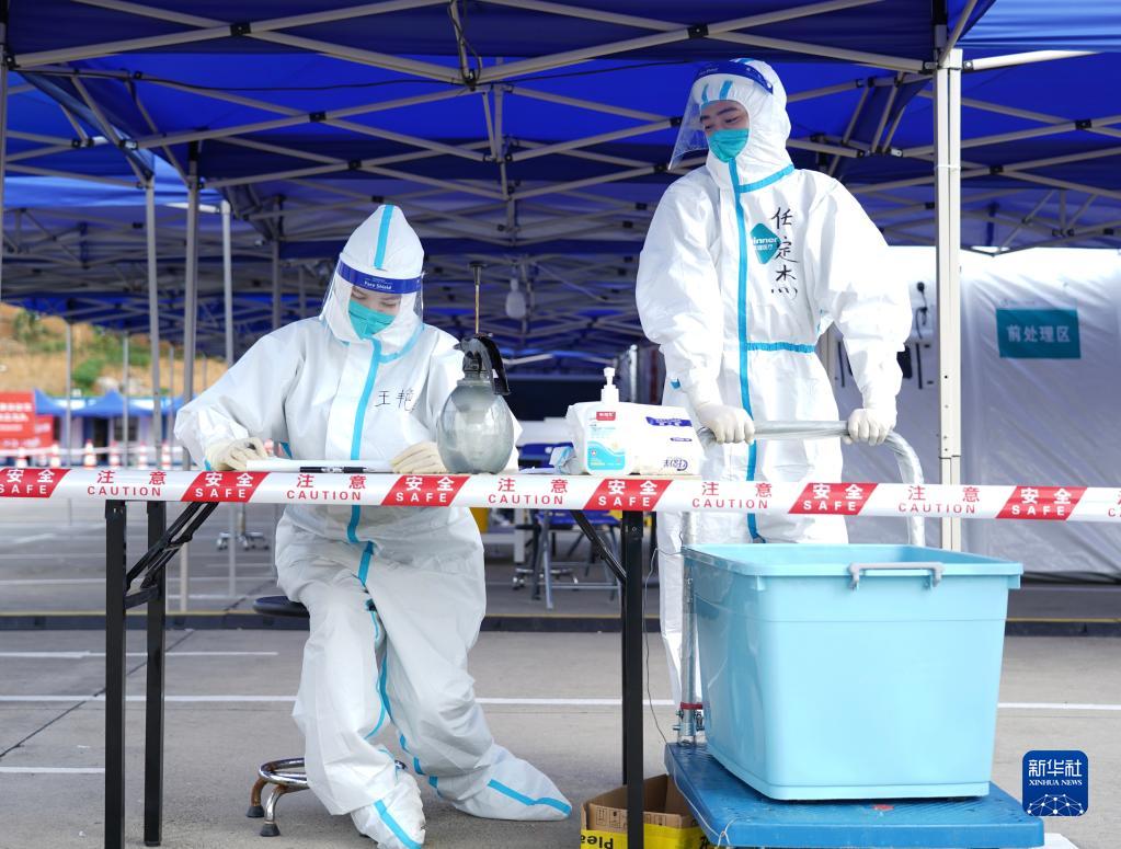 9月5日,氣膜方艙實驗室核酸檢測隊工作人員在等待收樣。