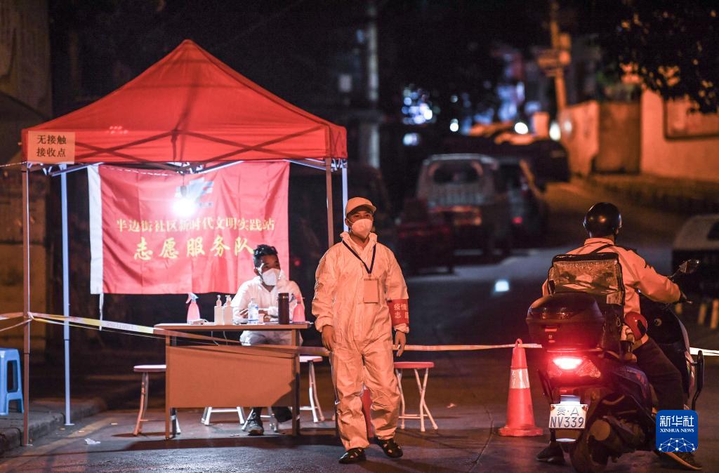 9月7日夜,志愿者在貴陽市云巖區一居民小區疫情防控點值守。