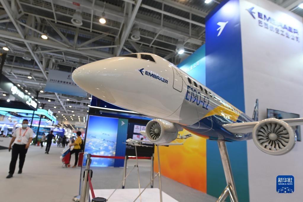 9月8日拍攝的在第二十二屆投洽會(huì)巴西航空工業(yè)公司展位展出的E190-E2飛機(jī)模型。