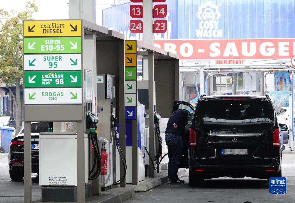9月8日,一名男子在德國柏林的加油站給汽車加油。