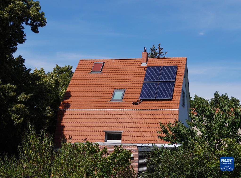 這是8月3日在德國(guó)柏林拍攝的一戶(hù)人家房屋上的太陽(yáng)能面板。