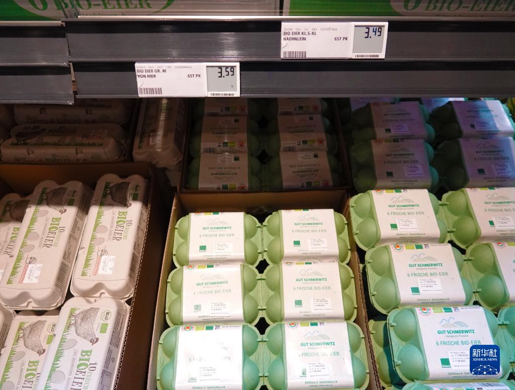 這是9月6日在德國柏林一家超市拍攝的雞蛋價格。