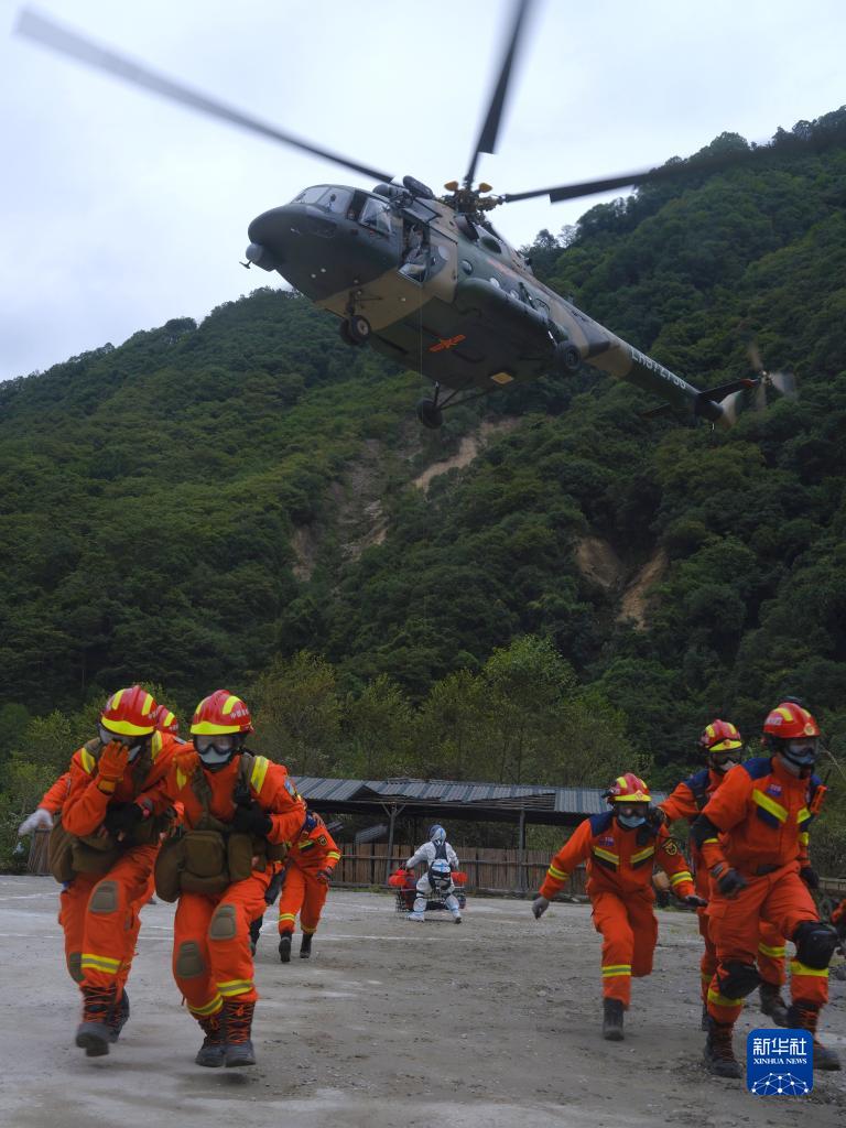 9月6日,西部戰(zhàn)區(qū)陸軍第77集團(tuán)軍某陸航旅官兵在進(jìn)行傷員吊裝轉(zhuǎn)移。新華社發(fā)(程雪力 攝)
