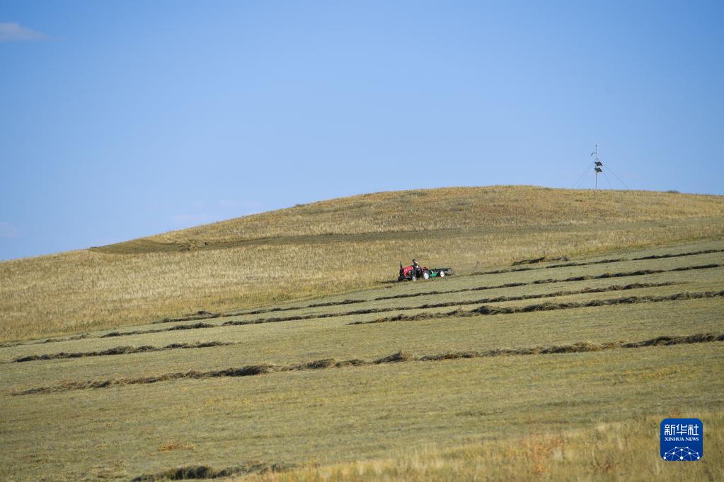 秋日時節,在內蒙古錫林郭勒盟阿巴嘎旗牧區的草原上,牧民開始打草,儲備越冬草料。