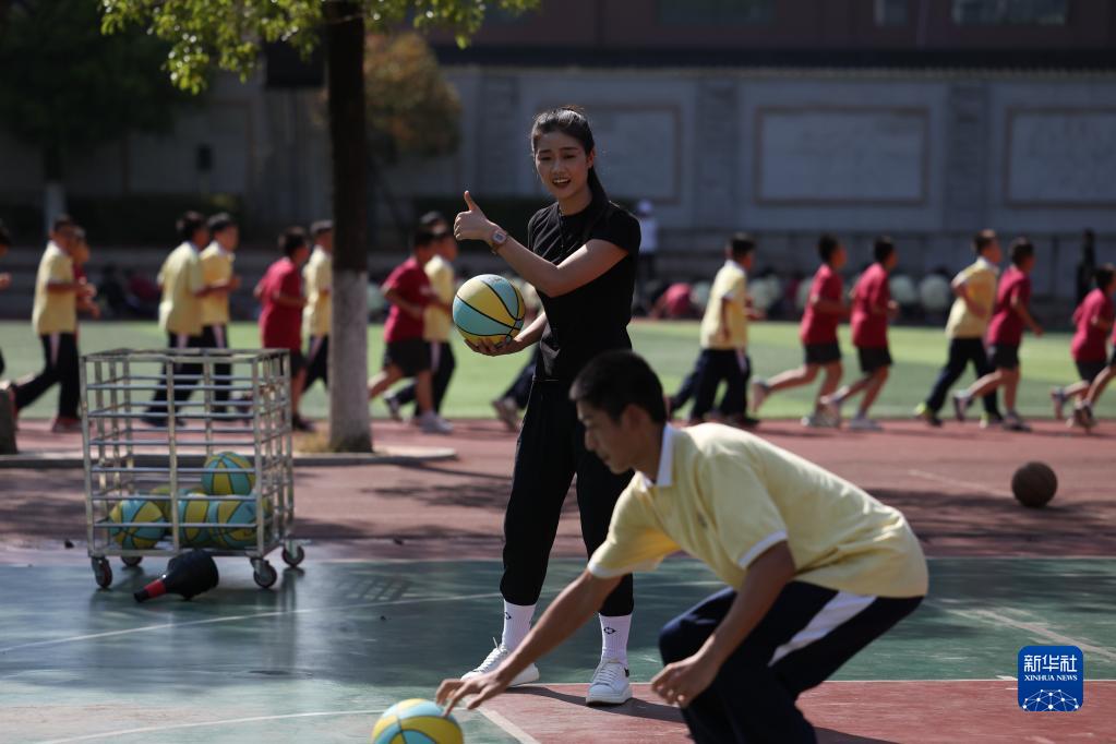 9月6日,于紅俊在長沙市明德華興中學給學生上體育課。