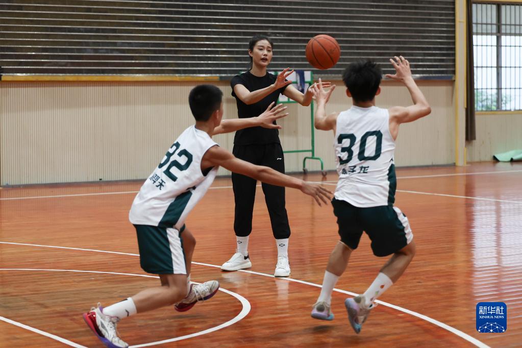 9月6日,于紅俊(中)在長(zhǎng)沙市明德華興中學(xué)指導(dǎo)籃球隊(duì)隊(duì)員訓(xùn)練。