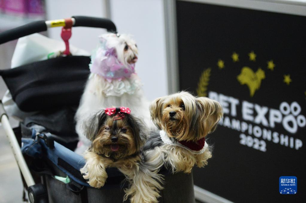 這是9月8日在泰國曼谷舉行的寵物博覽會(huì)上拍攝的寵物狗。