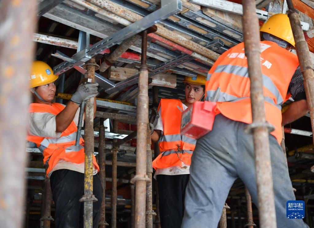 9月9日,張志軍(右)與大兒子張勁松(左)、小兒子張虎在施工現場工作。