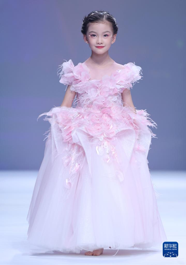 9月9日,小模特在北京中國國際時裝周(2023春夏系列)舉行的“AMORCODE”童裝發(fā)布會上展示童裝。