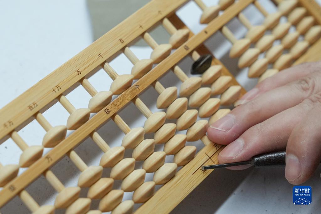 9月7日,在安徽省黃山市徽州區(qū)一家雕刻工作室,技師制作由汪素秋設(shè)計的改進型算盤。