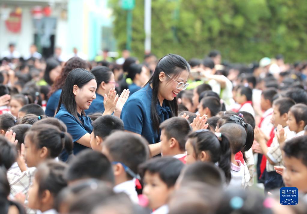 9月9日,廣西南寧市逸夫小學(xué)的師生在活動上擊掌。