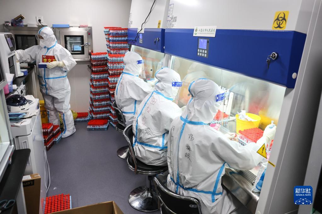 貴陽市筑城廣場移動方艙核酸檢測基地是承擔貴陽市大規(guī)模核酸檢測任務的“主陣地”之一。為盡快完成核酸檢測工作,實驗室檢測團隊采取24小時輪班倒制度,晝夜兼程。新華社記者 歐東衢 攝