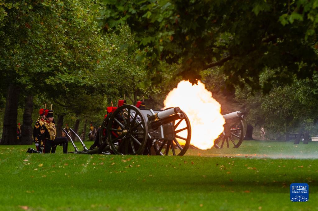 9月9日,士兵在英國倫敦海德公園鳴放禮炮悼念已故女王伊麗莎白二世。