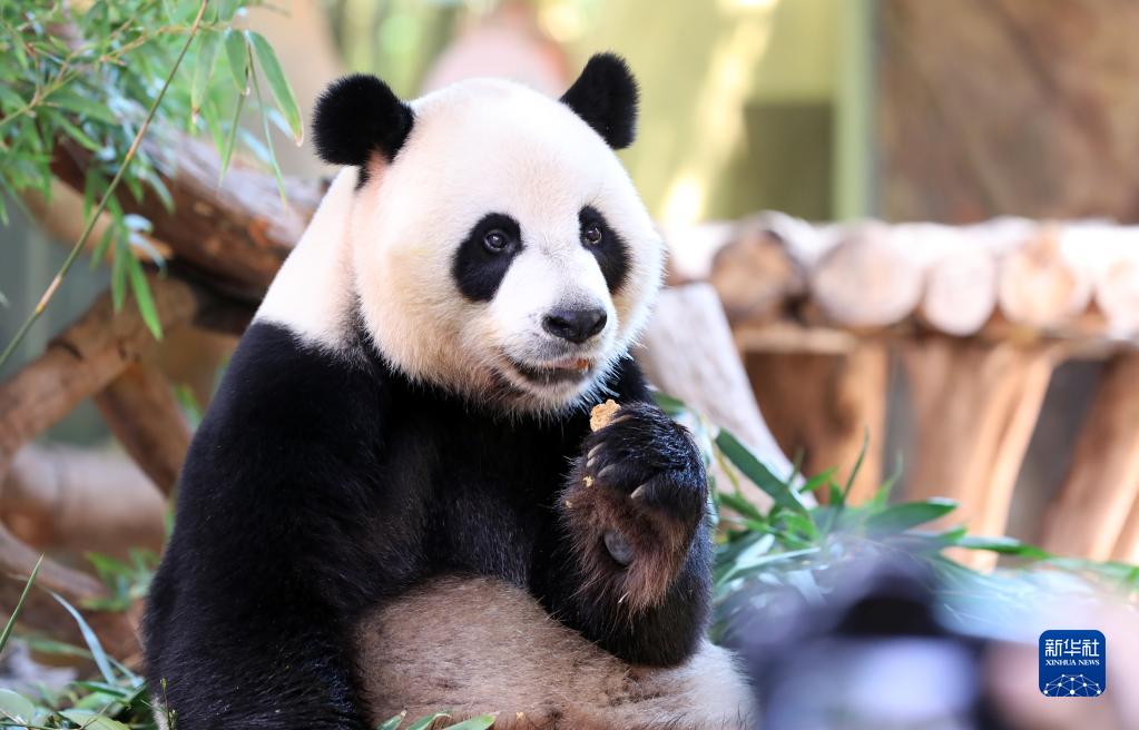 9月9日,在廣州長隆野生動物世界,大熊貓“帥帥”品嘗特制“月餅”。