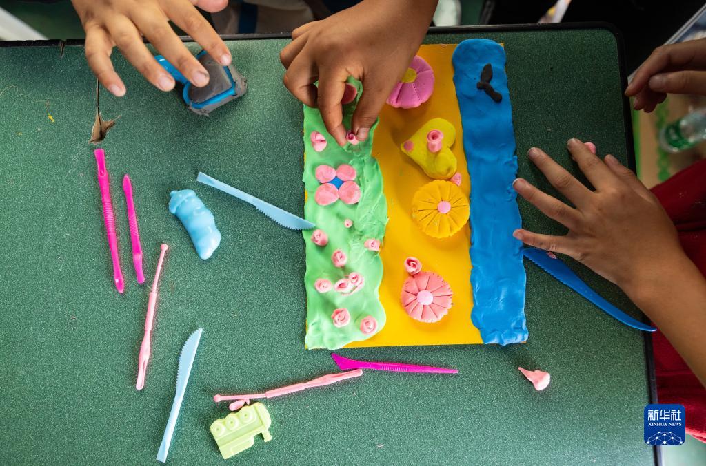 9月10日,在瀘定二中臨時安置點的“帳篷課堂”里,來自得妥鎮的孩子們用橡皮泥制作創意“月餅”。