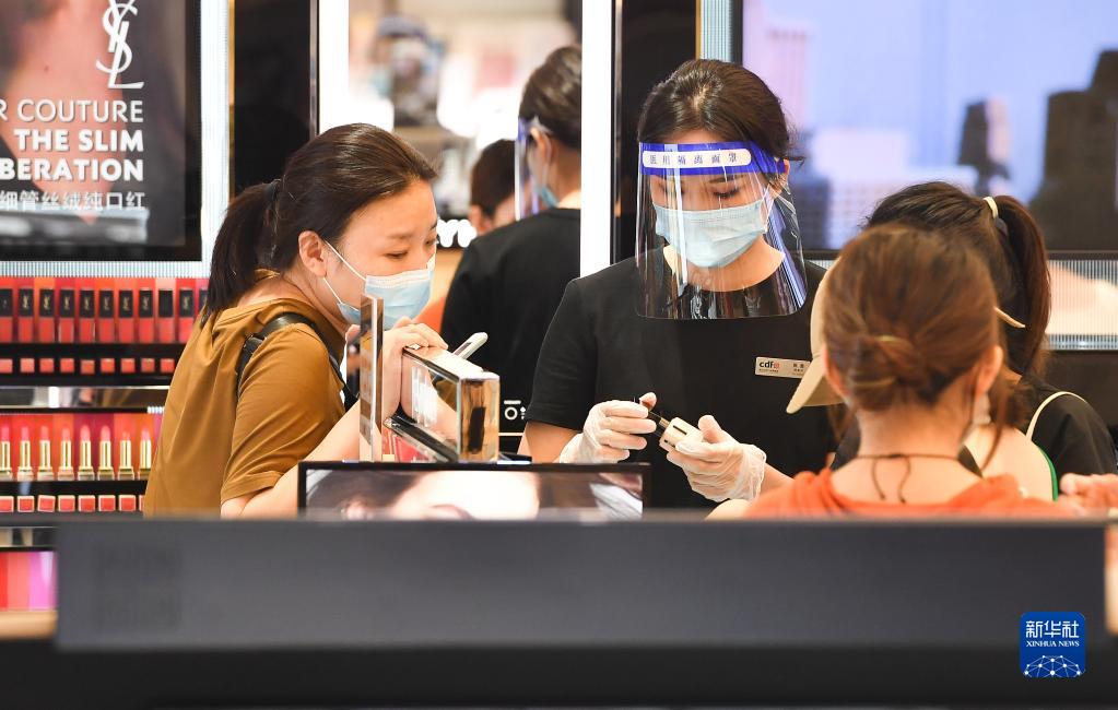 9月10日,游客在中免集團(tuán)海口日月廣場免稅店選購免稅品。