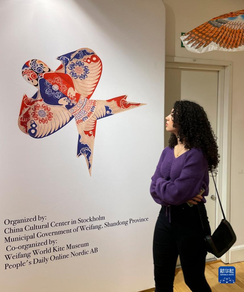 9月9日,在瑞典首都斯德哥爾摩的中國(guó)文化中心,觀眾參觀《中國(guó)濰坊風(fēng)箏展》。