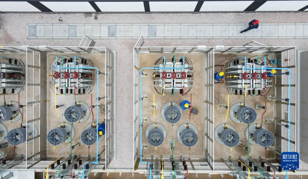 9月10日,工人在位于貴州臺江經濟開發(fā)區(qū)的220千伏苗江變電站內清潔待投運設備上的灰塵(無人機照片)。