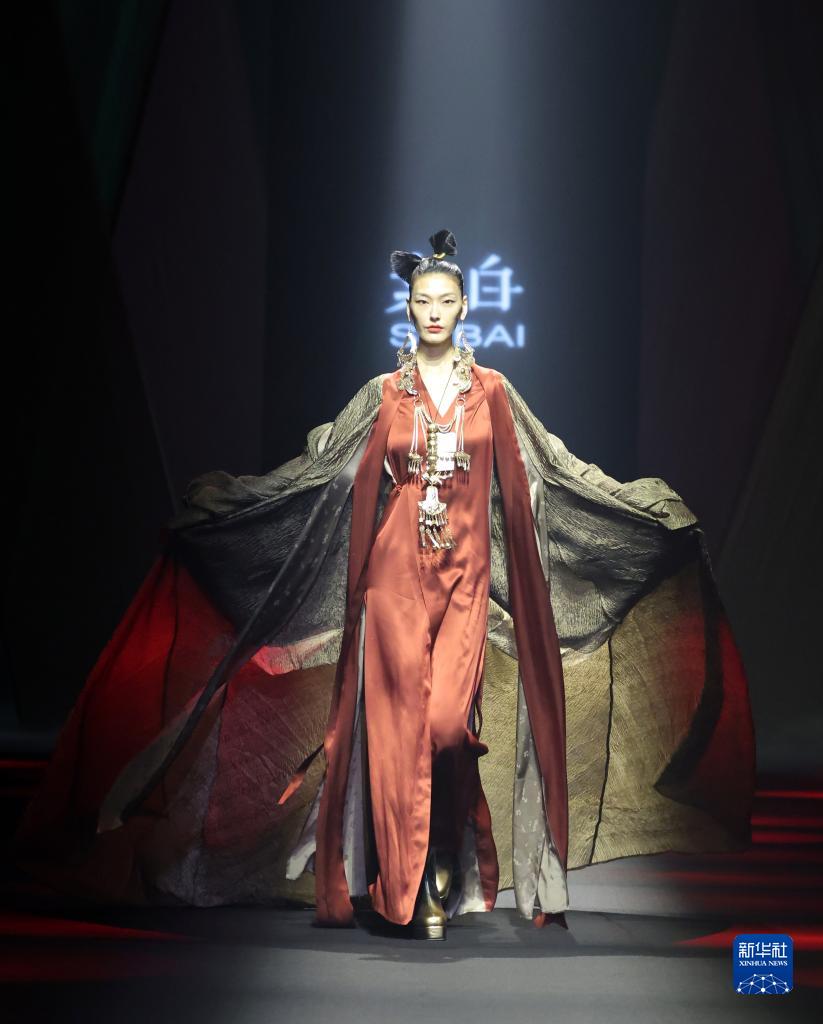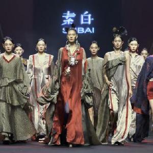 當日,“素白·馬乖”時裝發布會在北京中國國際時裝周(2023春夏系列)舉行。設計師推出50套用傳統“天然桑蠶絲織物”、具有古舊香云紗質感的環保面料等制作的時裝。
